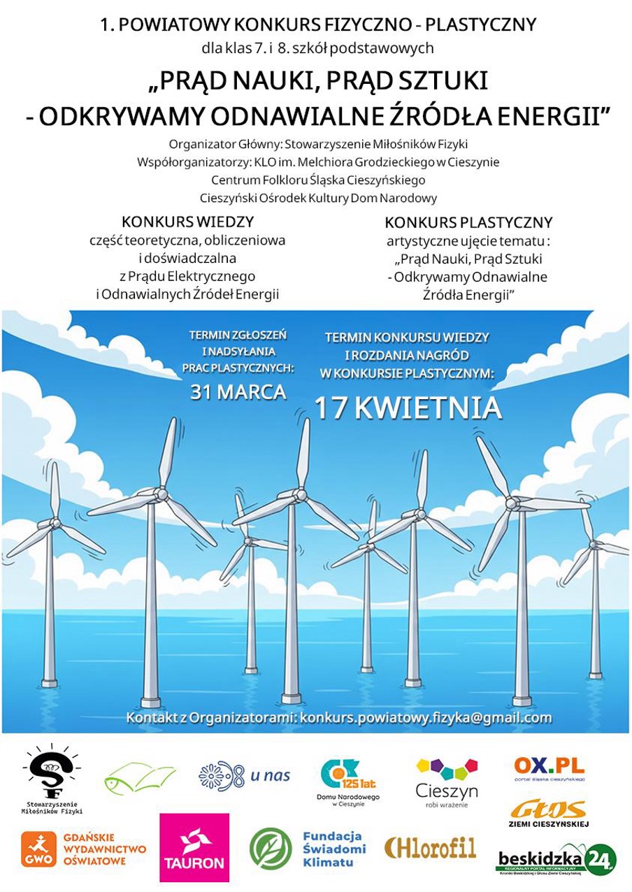 Fundacja Świadomi Klimatu objęła patronatem honorowym Powiatowy Konkurs Fizyczno-Plastyczny „Prąd Nauki, Prąd Sztuki – Odkrywamy Odnawialne Źródła Energii” – Edycja 2026. Konkurs „Prąd Nauki, Prąd