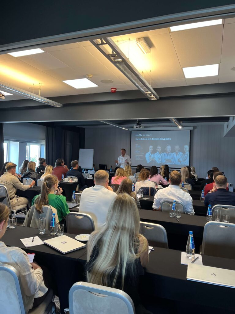Pierwsza część szkolenia – prowadzona przez Krzysztofa Rzepkowskiego z Sandler Training Polska – była okazją do poznania technik skuteczniejszej komunikacji z klientami oraz metod przejmowania pełnej kontroli nad procesem sprzedaży. Prelegent w trafny sposób zdiagnozował najczęstsze wyzwania, z jakimi mierzą się doradcy na rynku pierwotnym, a także wskazał konkretne działania, które mogą zwiększyć efektywność sprzedażową.